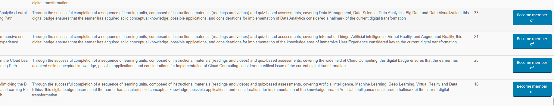 Learning paths are sequences of learning units on a given topic. When you subscribe to a learning path and complete all the respective learning units, you will be awarded a digital badge.