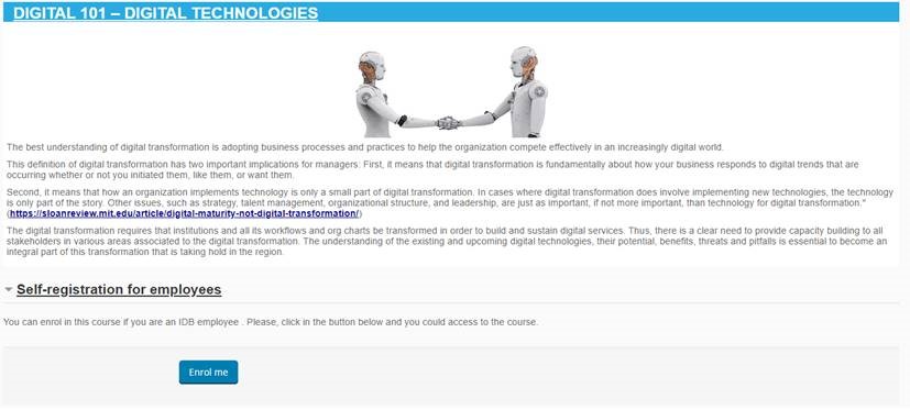 Another window will open to allow you to register to the course automatically. Click on the button “Enroll me”.