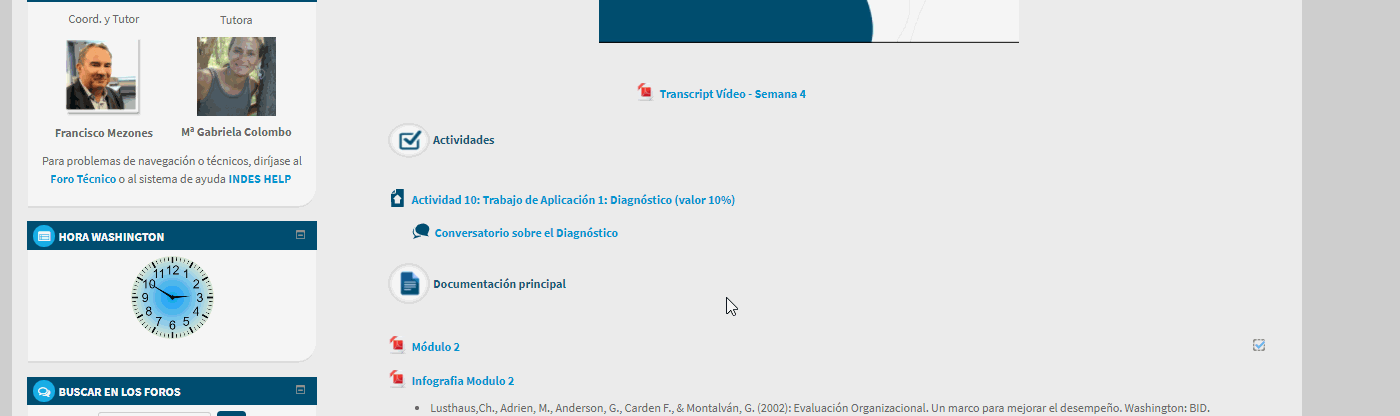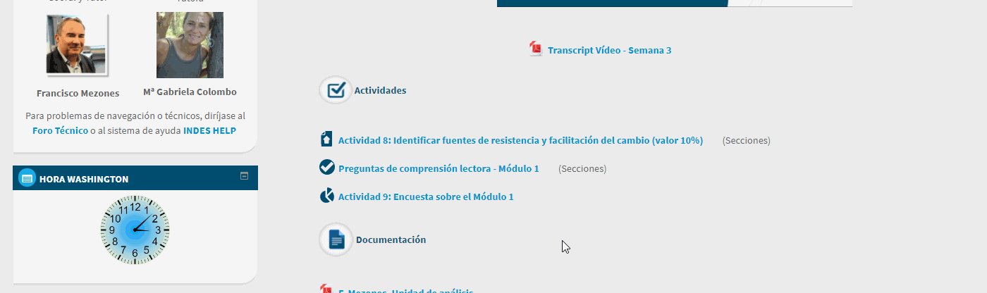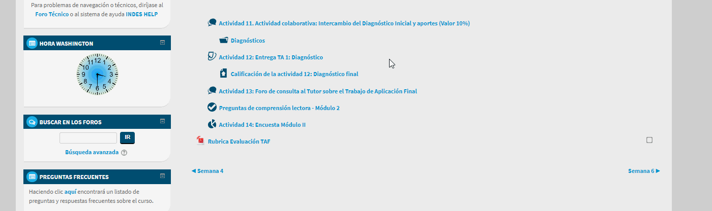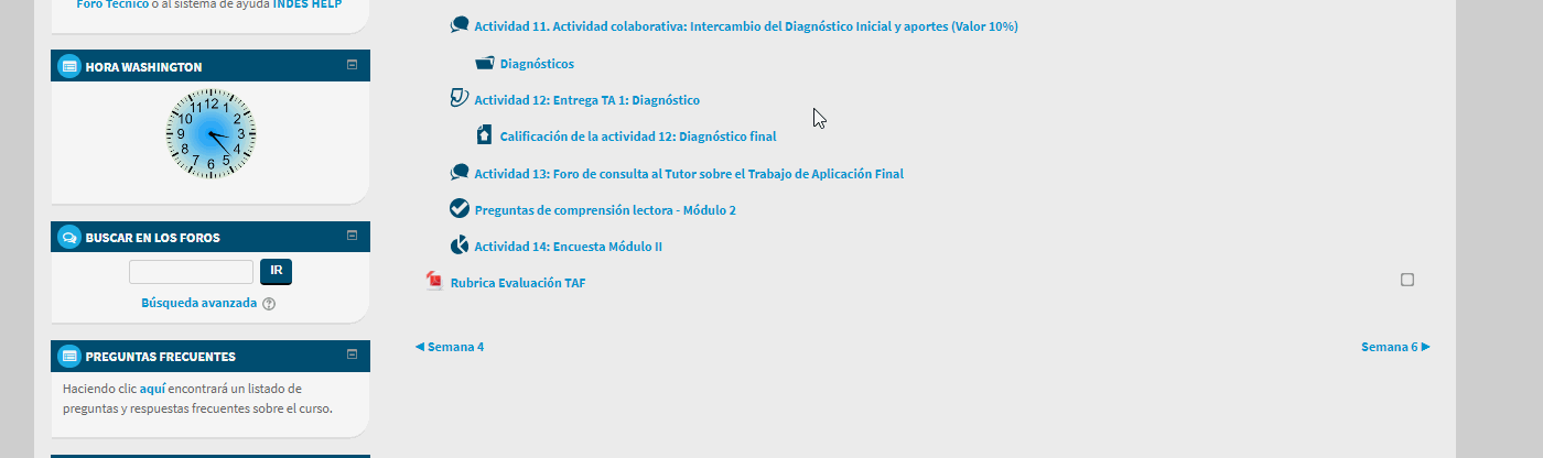 Cuando una semana o módulo del curso dispone de un foro, puedes acceder al mismo a través del enlace dispuesto para ello entre las actividades del curso.